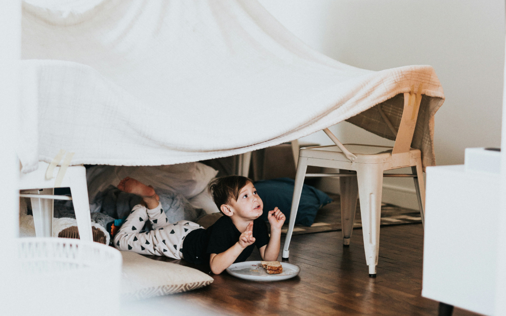 Set up a tent, cubby or teepee in the backyard, if the weather’s good. Or inside if it’s not.